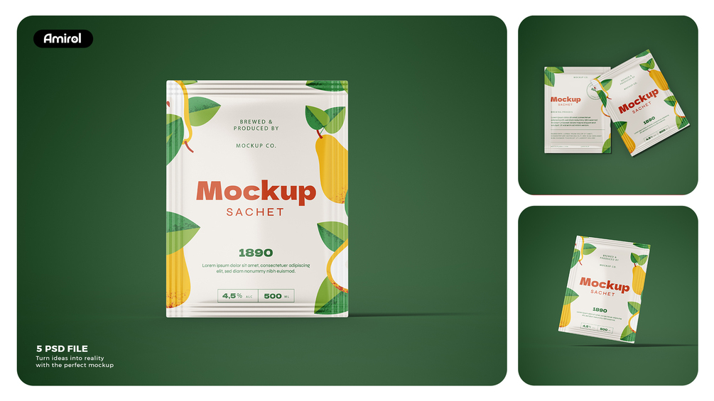 Present your packaging designs with this realistic plastic sachet mockup! Perfect for showcasing food, cosmetic, or product branding in a professional way. This editable PSD mockup is ideal for designers, marketers, and brand owners who want to create stunning presentations in seconds. High Resolution mockup with realistic product, easily customize with organized named layers, this mockup will be your best showcase of your product. Infinite possibilities are fast and easy to create in a few clicks. All object are customizable in every detail like device color, shadow, reflection, and ambient shadow strength.
